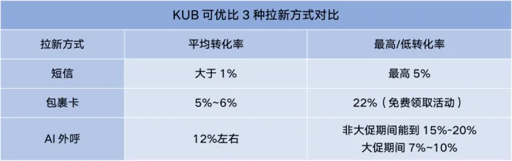 在前期拉新上,可优比主要通过AI外呼、短信、包裹卡三种形式做私域引流,各渠道的拉新情况如下: