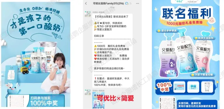 这次活动是可优比和简爱联名的,除了简爱,可优比还与爱他美、小鹿蓝蓝等品牌联名做过活动。品牌联名往往能够流量互补,同时覆盖双方目标受众,起到1+1大于2的营销效果。
