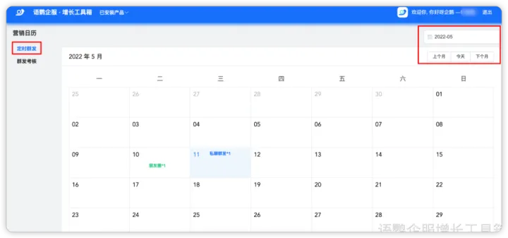在私域运营过程中,社群内容和朋友圈都需要提前做好规划并准时执行,当内容较多时,就需要使用工具进行管理。建议使用语鹦企服【定时群发SOP】功能,借助营销日历规划好内容并设置发送时间,每天提醒员工一键发送社群内容/朋友圈,避免疏漏。
