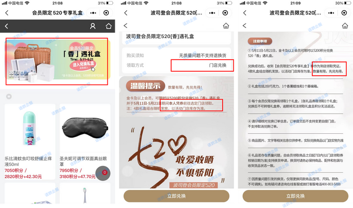 在转化方面,波司登主打“私域引流门店”的转化模式,策划线上微信社群活动吸引消费者参与并赢取积分,用户获得积分后到店兑换礼品,鼓励消费者走进门店,大大提高转化概率。