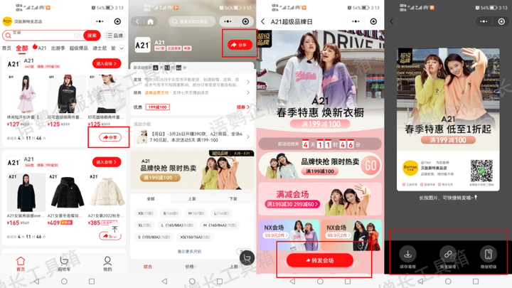 商城多触点转化:多种优惠专区、优惠玩法相互搭配,多处设置“分享”引导,裂变流量;