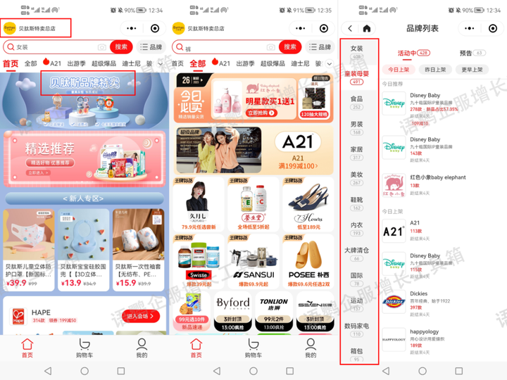 独特私域模式:走品牌特卖路线,整合渠道资源,为爱精挑细选的宝妈提供质优价廉的好物;
