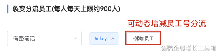2)好友裂变:可筛选优质客户或者有资源的合作方成为分销员,分享传播获得奖励。企业可借助语鹦企服的「好友裂变」功能,给特定客户列入「裂变分流员工」,设置阶梯任务,生成客户专属的海报或链接,解锁任务后自动打上标签,按标签自动发放奖励。