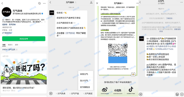 引流路径:关注公众号-进入元气森林会员中心-私域引流转化。