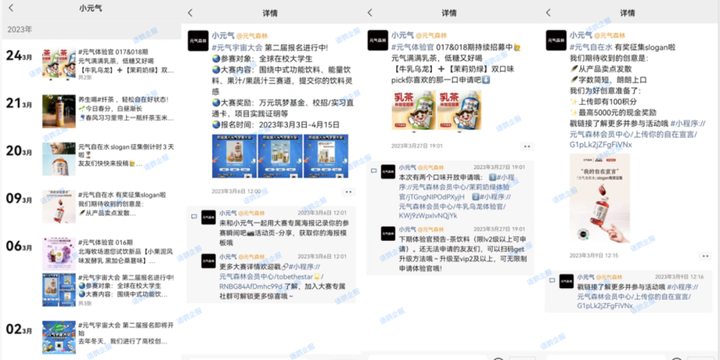 朋友圈背景图是主推品的广告图。从发文节奏来看该小元气并未保持每天更新,大多数情况下都是在更新活动,以及提示用户去提升等级,也就是消费。