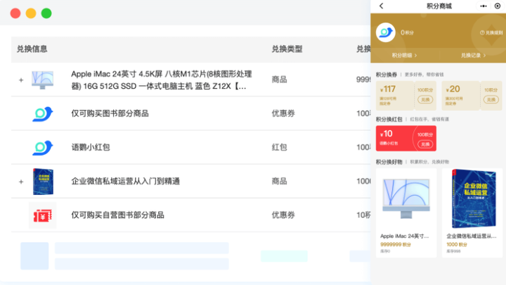 以上功能都可以在语鹦微商城的【积分商城】功能下实现,用户获取积分后,可以兑换红包、卡券、实物商品等。充分利用好【积分商城】可以促进用户留存提高用户粘性,以提高后续转化。