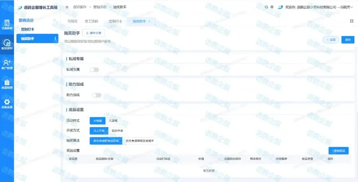 想要做类似抽奖活动的商家可以使用语鹦企服的【抽奖-大转盘/九宫格】功能,不仅可以设置活动奖品样式、参与人员条件,还可以根据企业需要提供不同的开奖方式,高效又精准。