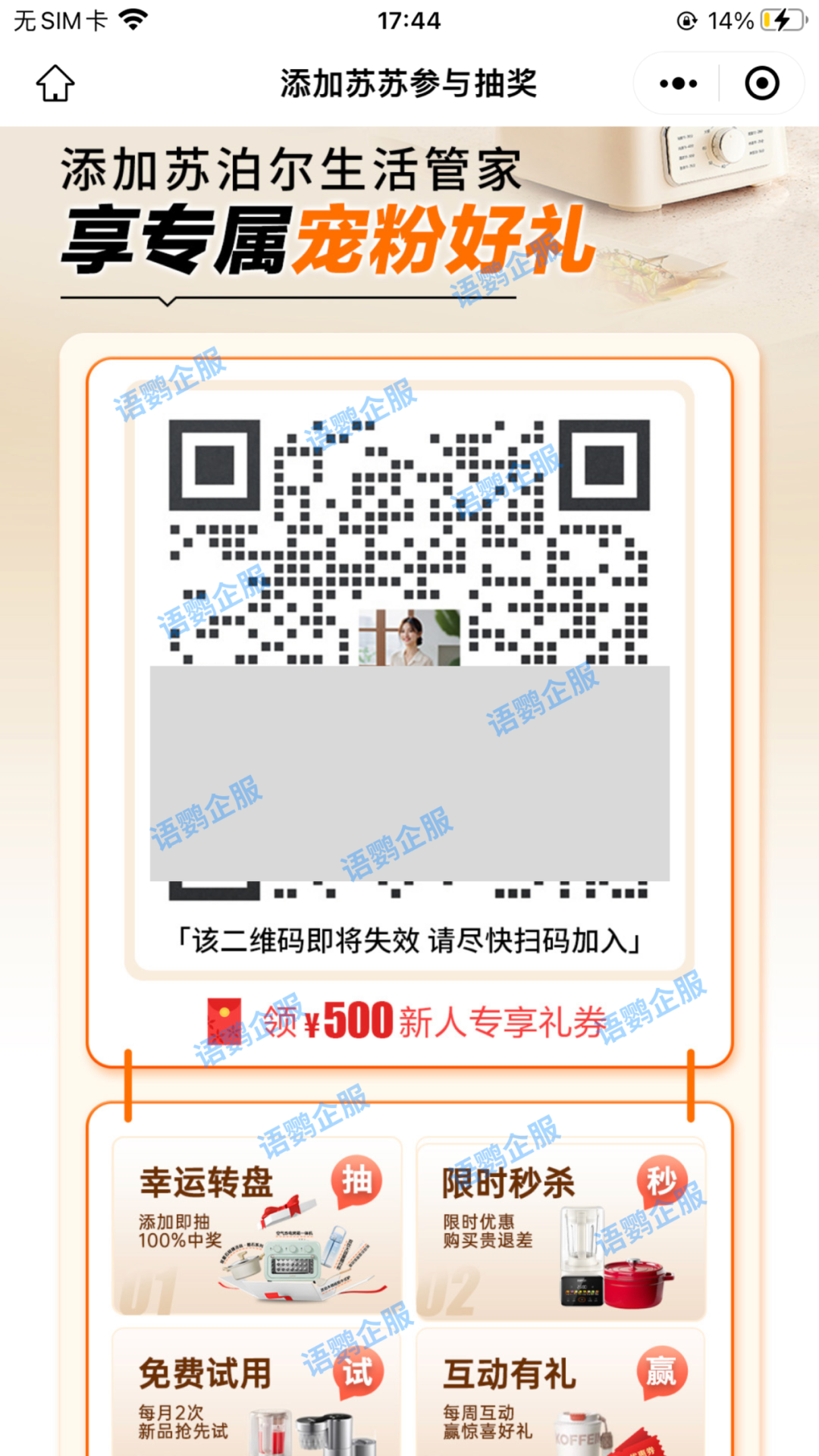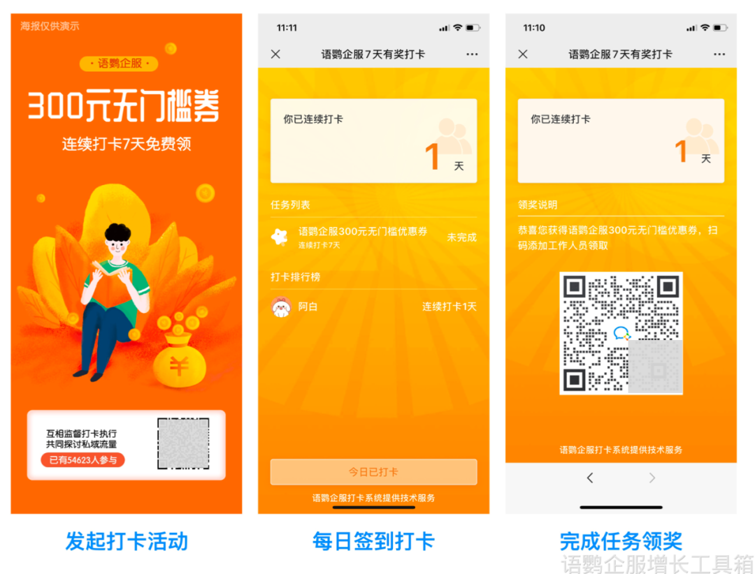 将公域用户转化为品牌资产过程中较为关键的动作,便是用户的心智教育,只有通过一系列操作让公域用户完成自己是“私域用户”的认知,才能促使公域用户转化为私域用户。利用语鹦企服的“仅好友参与”功能,商家便可在进行全域营销活动时,对客户进行不同方向的引导。非企业好友的人员会在参与活动前,转跳到扫码添加页面,完成“只有私域用户才能参与活动、享受优惠”的心智教育。