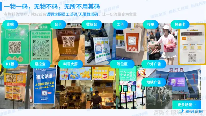 1)线下门店引流:在门店的各个触点,例如餐桌、菜单、海报、桌贴、点餐小程序等,放置企业微信二维码、小程序码,引导用户扫码关注。