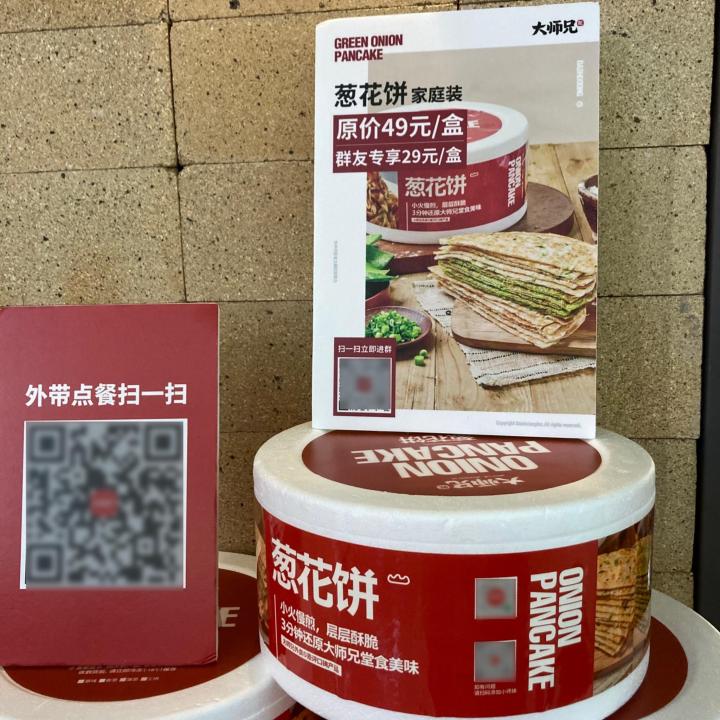 以葱花饼为诱饵,原价49元/盒的葱花饼,企业微信群友专享价只需29元/盒,到店出示群友特权,即可自提带回家。通过群福利、优惠券等方式,「大师兄餐饮」在短短两个月的时间里,就累计了400个企业微信社群,8万多个群员。