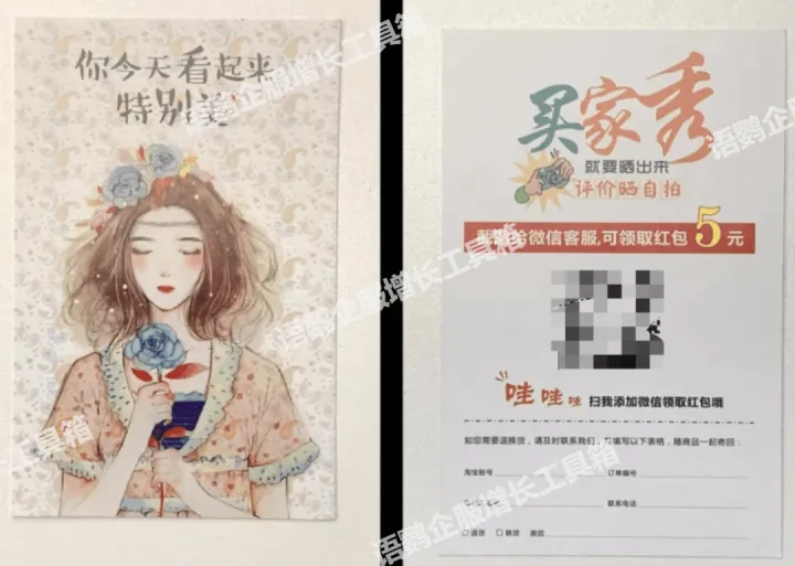 许多品牌还会在电商平台开设网店,或通过微信小程序搭建线上商城。针对线上下单的客户,可随单附送包裹卡,印上语鹦企服【员工活码/进群活码】,引导扫码“享折扣、领红包、返现、领券”等。