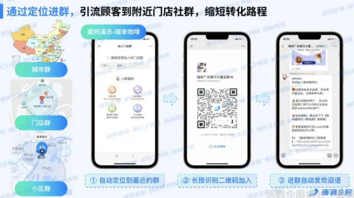 建议搭配语鹦企服【定位进群】功能,自动获取用户位置信息,引流到附近门店社群,大大缩短转化路径。