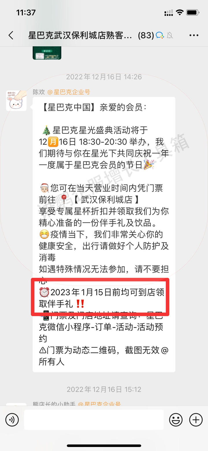 门店可以在社群内开展赠品引流活动,比如买指定产品赠送保温杯、雨伞、包包等超级赠品。�星巴克针对会员在社群内开展了根据商场门票领取伴手礼或者饮品的活动,能在一定程度上激起客户去线下门店的欲望。