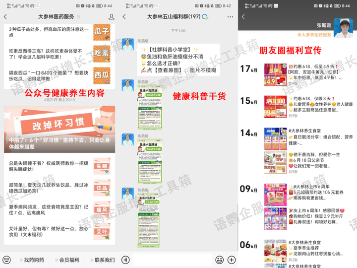 以上就是《大健康行业私域怎么做?健康医疗行业如何做好私域流量?》的相关解答了,健康医疗行业做私域最需要“专业”和“服务”,以专业的IP形象和内容提升用户对健康的认知,再通过高质量服务获取用户信赖,自然提高转化率和复购率。更多企业微信玩法,关注语鹦企服私域管家。
