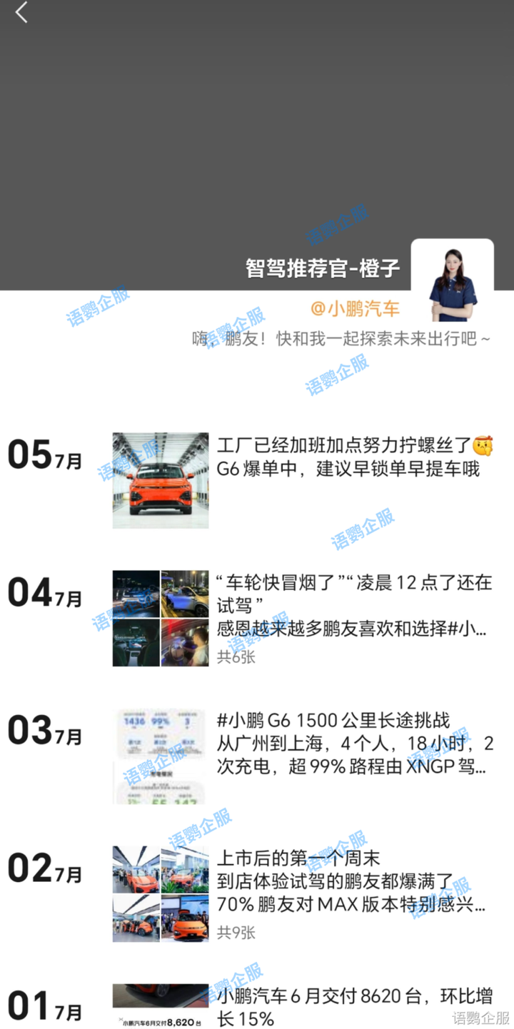 关注客户生命周期:不仅要吸引新客户,还要关注现有客户的维护和二次购买。提供售后服务、维修保养等附加值,让客户愿意再次选择你的品牌。比如小鹏汽车每天在朋友圈推送试驾活动等企业相关的活动信息,可以帮助小鹏汽车保持现有客户的满意度,同时吸引更多的潜在客户。