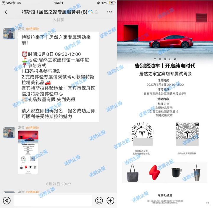 建立社群:创建专属的社交媒体群组或页面,用于汽车爱好者或潜在买家之间的互动。发布与汽车相关的内容,提供有价值的信息吸引顾客参与,或是答疑解惑,建立社群。例如特斯拉在社群内分享产品试驾会活动海报,海报上附有社群二维码,引导顾客扫码进入领取专属礼品,吸引新成员加入。