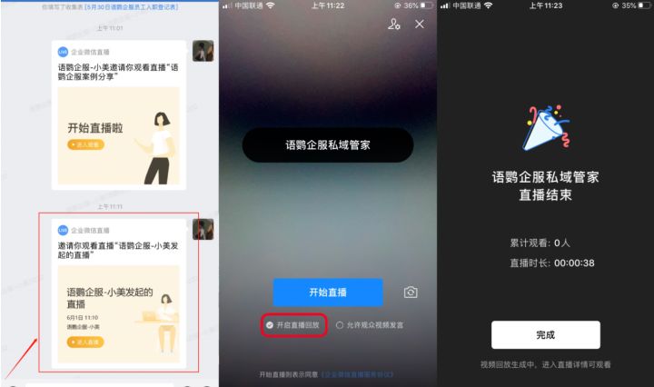 目前市面上多数的知识付费产品,提供的服务方案基本上以音频、直播、视频等方式为主。企业微信不仅可以借助其本身完善的直播和回放保存功能展示产品和服务,还可以通过企微工具链接外部程序,一步到位。