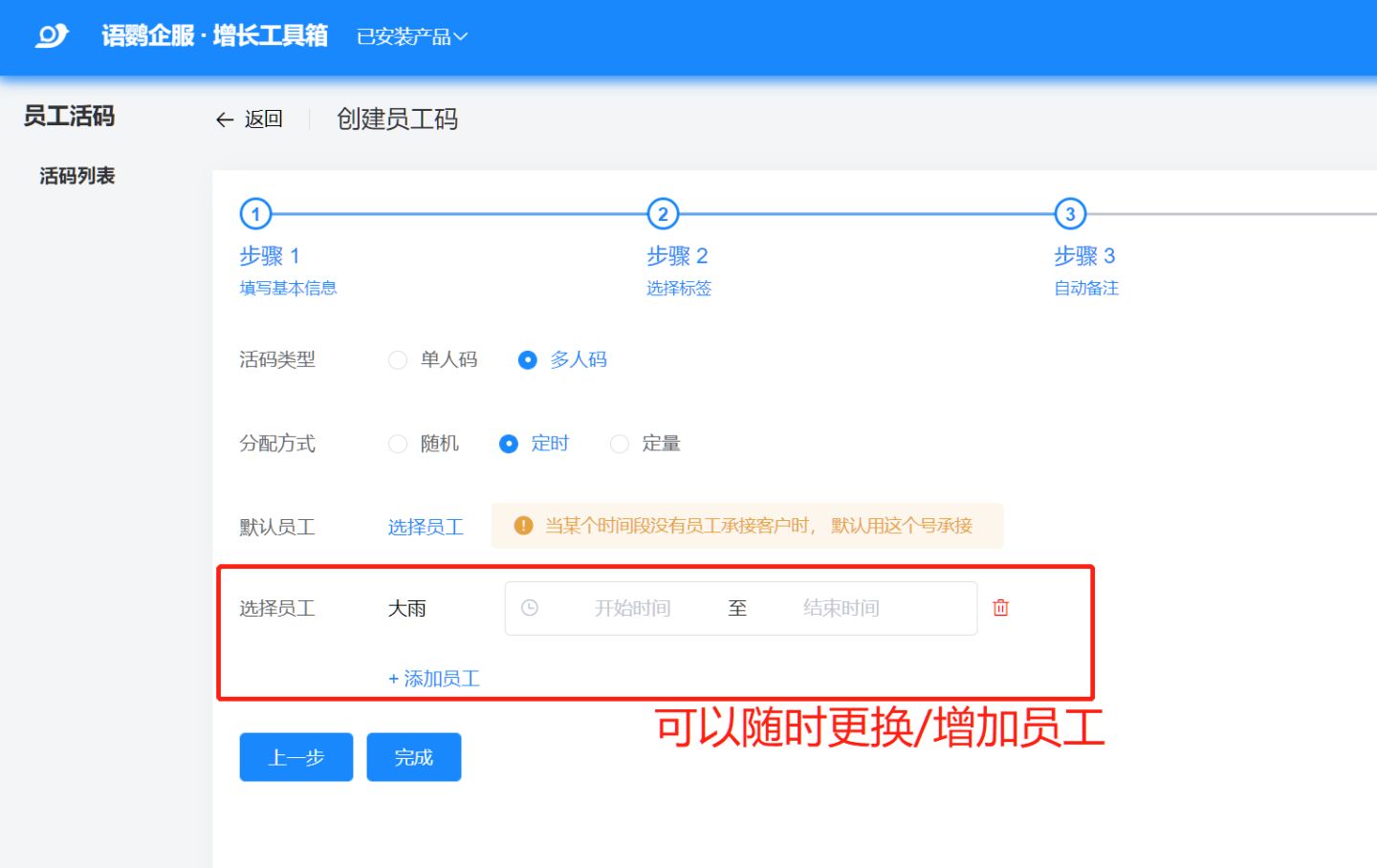 而且语鹦企服生成的员工活码可以随时动态更换二维码,让包裹卡上的二维码永不失效。