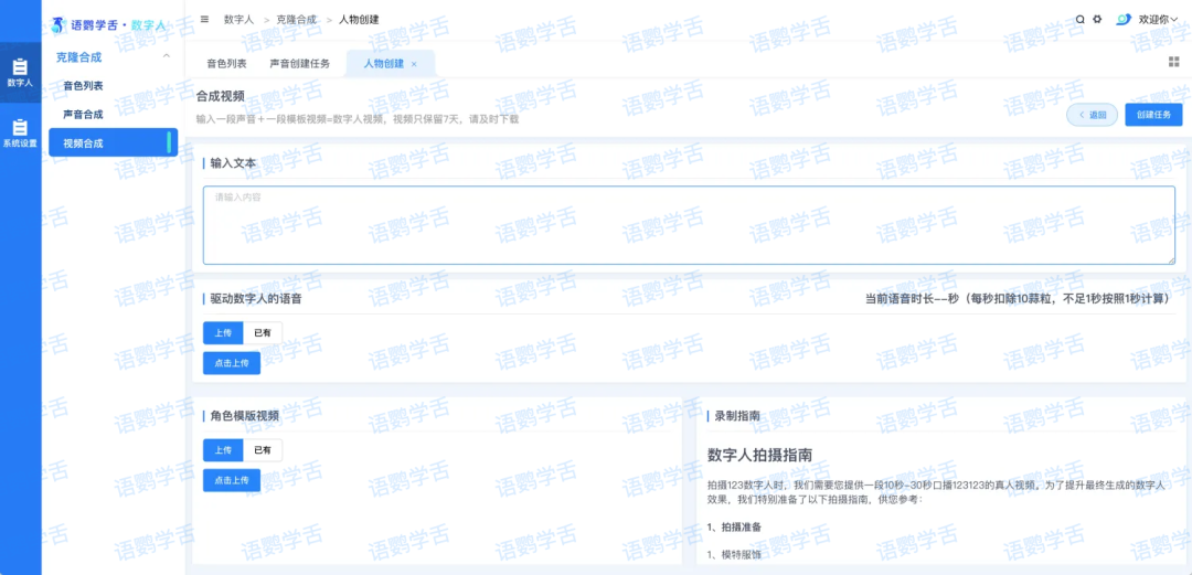 操作便捷性也是判断一款数字人工具好用与否的关键指标。语鹦学舌的界面设计简洁直观,即使是没有任何技术背景的用户,也能在短时间内掌握使用方法。从声音上传到形象克隆,再到最终的视频合成,每个步骤都有清晰的引导,大大降低了学习成本。这种”傻瓜式”的操作流程,让创作者能够将更多精力投入到内容本身的创意和策划中,而非被技术细节所困扰。