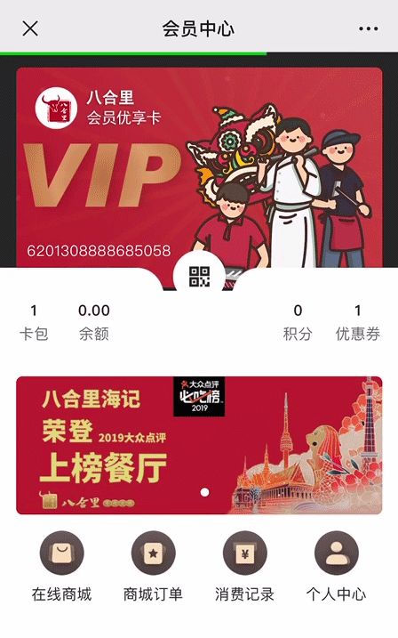 新店开业期间,八合里牛肉火锅通过在公众号发软文,推出折扣——“试营业期间进店享8折优惠,正式开业当天可享5.8折优惠,后续5天还可享受6.8折至7.8折”,结合推文末尾限时活动,引流顾客到店消费。 同时,品牌还为线下门店建立了对应的微信社群,引导顾客在小程序上一键完成会员开卡操作,成功将堂食顾客转化为线上会员。现私域会员达500万,会员年增长率超154%