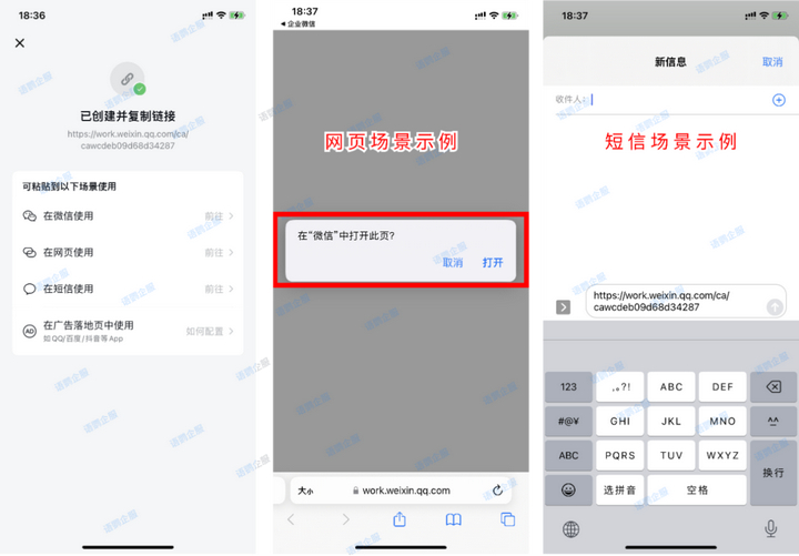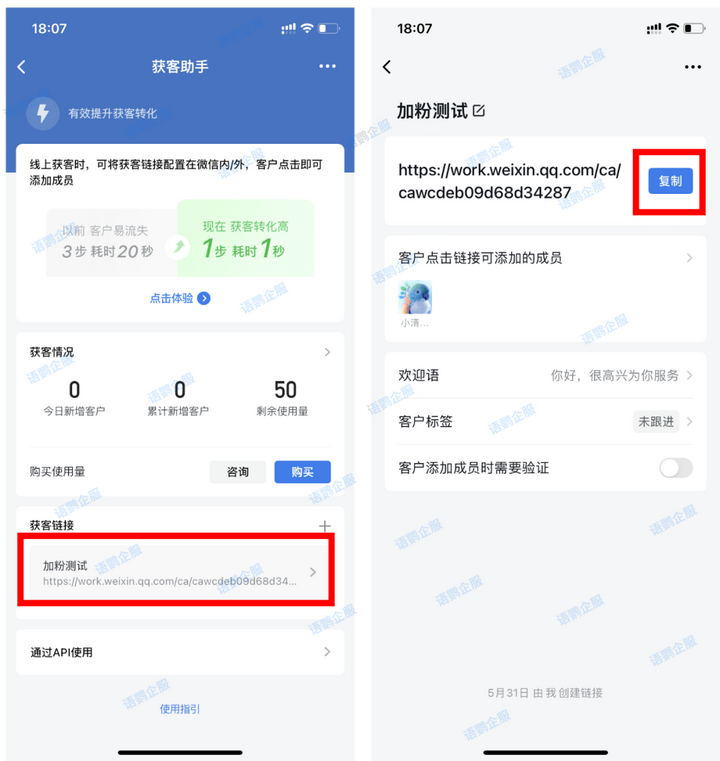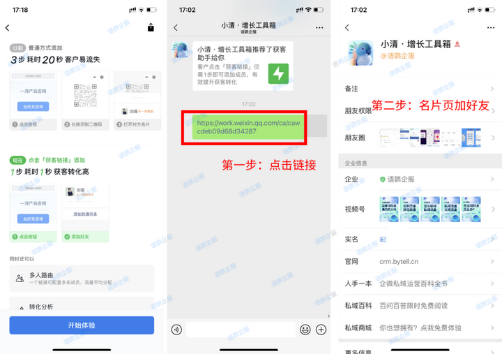 相比较传统的扫码加好友,企业微信获客只需要点击链接就自动跳转到加好友页面,提高了客户的转化率和体验度,避免客户在添加好友的过程中流失。