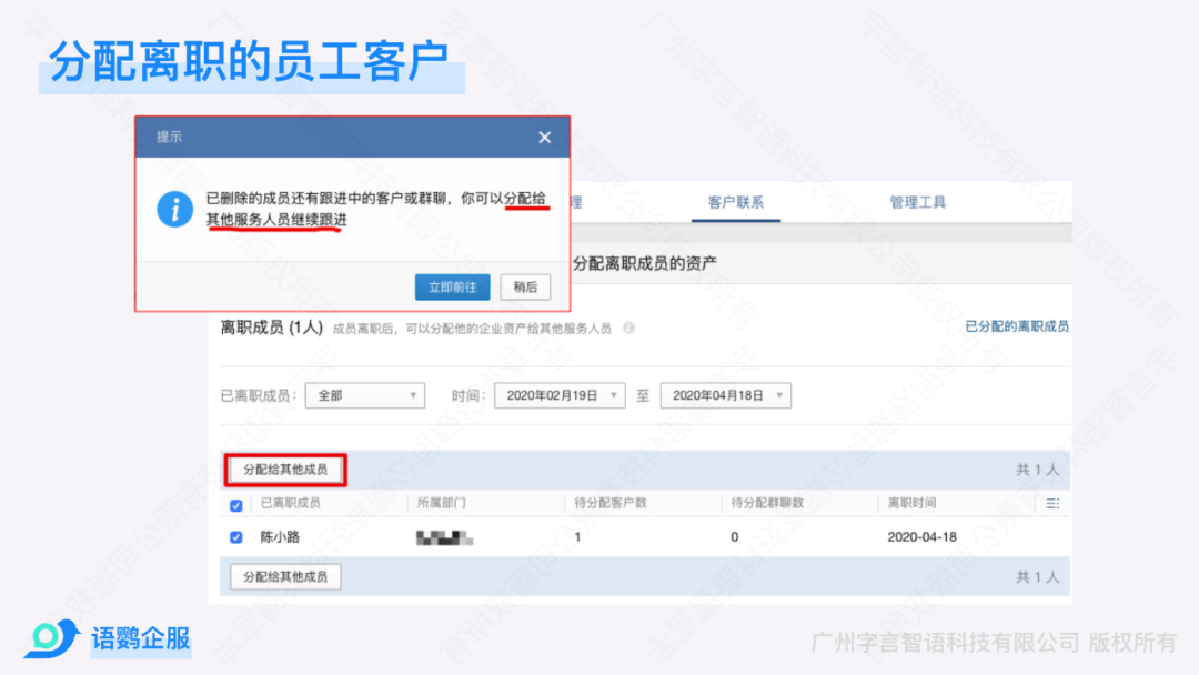 3、员工离职,好友分配方式不同