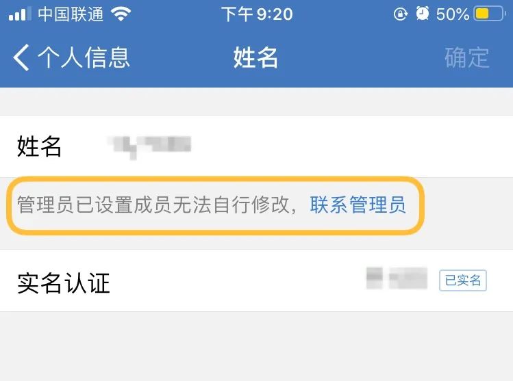 如果提示「管理员已设置成员无法自行修改」,只需点击「联系管理员」,让管理员在企业微信后台修改即可。