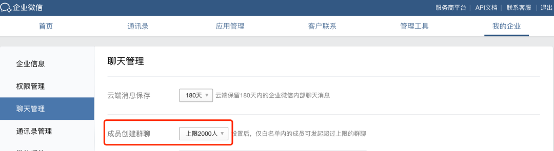 指由同一企业企业微信成员创建的同事内部群,人数上限2000人。