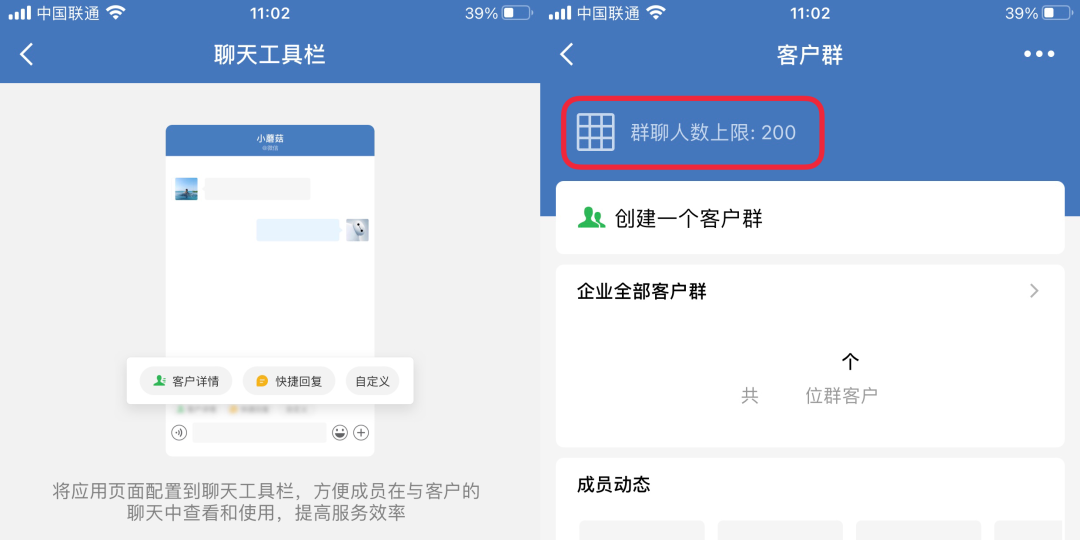 群主身份不同、群成员构成不同,外部群人数上限也不同,具体区别如下: