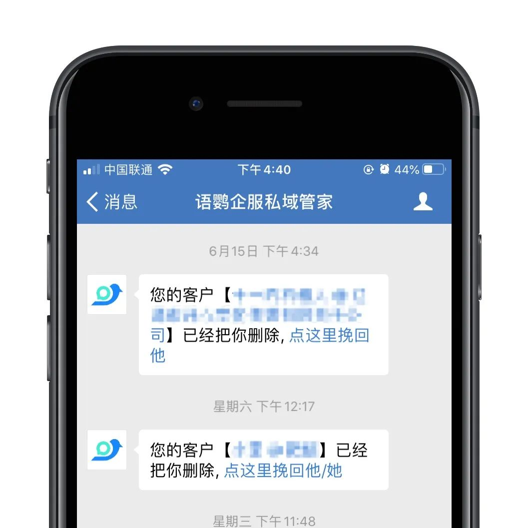 在企业微信要如何检测是否被删除呢?只需安装语鹦企服私域管家,即可实现客户删除实时提醒。如图所示,在语鹦企服私域管家申请使用并配置好,无需任何操作,只要客户删除了员工的企业微信,对应的员工就会收到实时提醒。