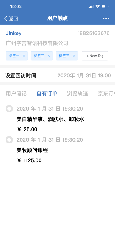 语鹦企服通过API接口开发,可以打通企业微信与自身系统、App的数据,包括用户画像、订单数据等。