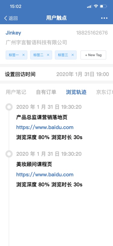 3、客户浏览轨迹提醒