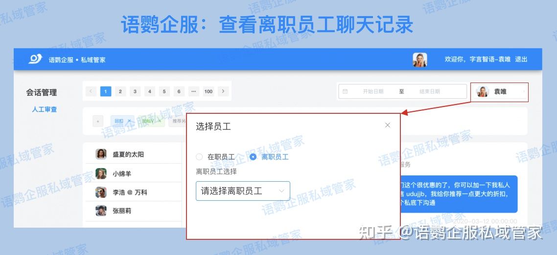 而且语鹦企服还提供多项基于会话存档的高级功能,包括敏感词监控、离职员工 聊天记录存档等,详情前往语鹦企服官网咨询。更多企业微信玩法,欢迎关注语鹦企服私域管家博客。
