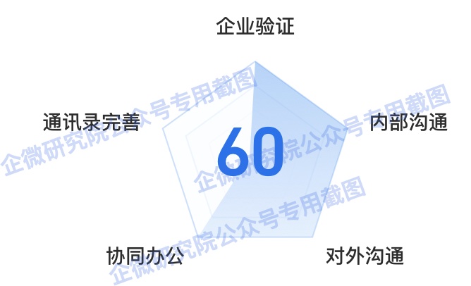 企业微信分是根据企业通讯录完成程度、内部沟通、协同办公、对外沟通和企业验证五个维度计算的,每天凌晨会更新一次企业微信分。其中: