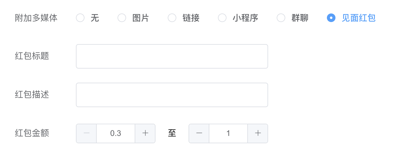 应用场景为一对一私聊,无需设置个数,确认好金额即可发送。添加客户后,可以单对单发红包,提升好感度。而语鹦企服「见面红包」功能,无需人工操作,系统自动发送,节省人工成本;
