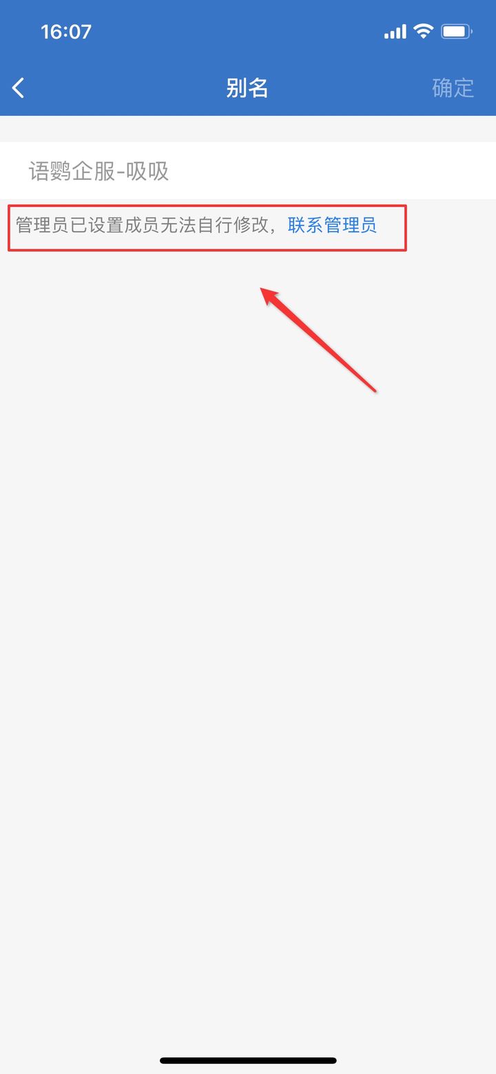 需要注意的是,如果出现“管理员已设置成员无法自行修改”的情况,需要联系管理员在后台更改设置即可修改别名。