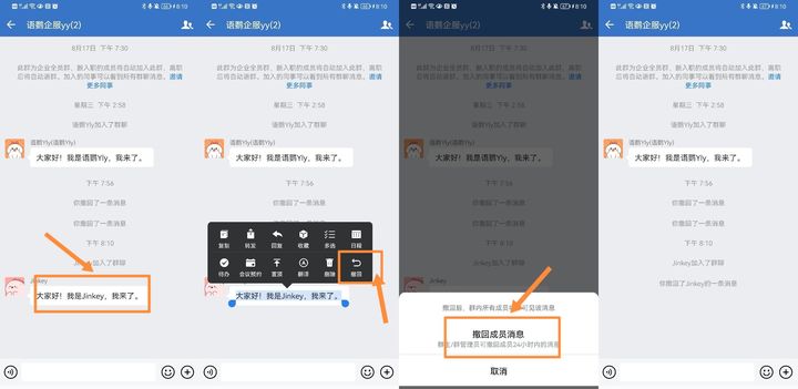 企业微信怎么撤回群成员消息?