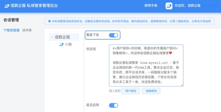 语鹦企服个性化欢迎语