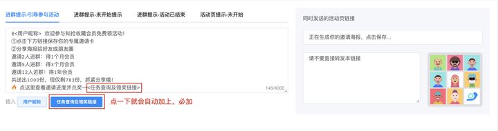 以社群裂变增粉为例。如下图所示,企业可在语鹦工具箱后台设置社群裂变话术,快速创建裂变任务并用于传播。