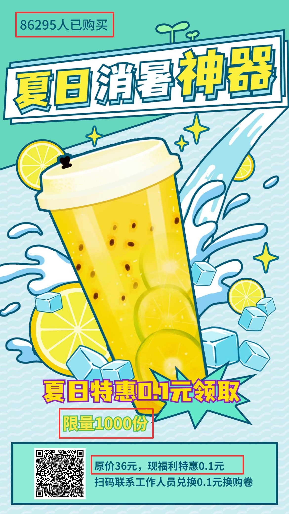 其次就是海报的引导语了,引导语是引导用户点击扫码至关重要的一步。引导语可以从优惠价格对比、多少人已购买等从众心理、限量多少份制造压迫感等不同的引导话术下手。