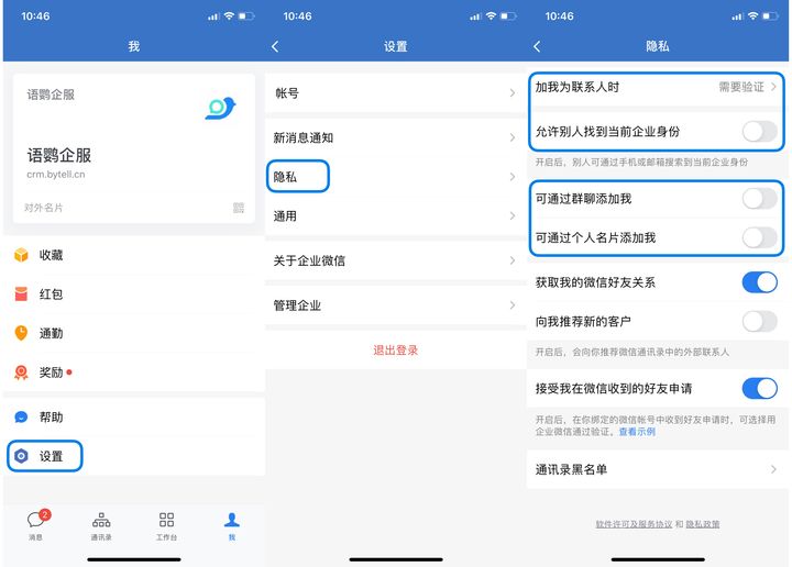 方法1:加强企业微信隐私设置