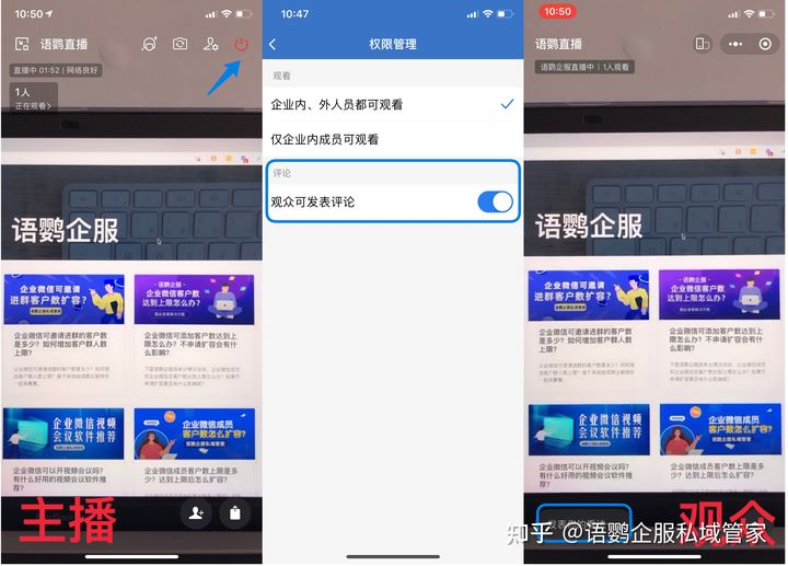 如果主播在企业微信直播时开启了「观众可发表评论」功能,观众就可以在观看直播的时候跟主播进行评论互动了。那么主播要如何开启「观众可发表评论」呢?