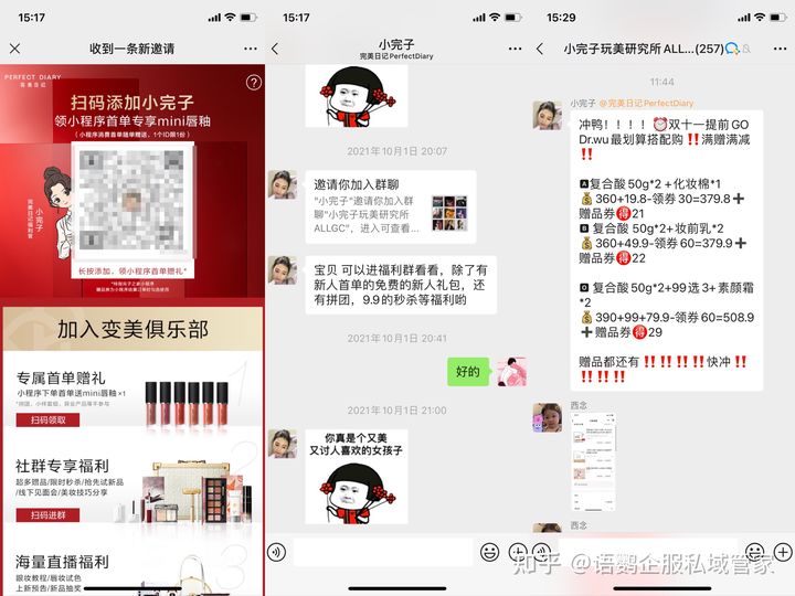 企业通过群发推广消息、朋友圈营销和在社群里不断进行UGC内容创作来吸引客户下单消费,创造大量的精准客流变现,因此私域流量对于这些企业来说很重要。如完美日记的社群营销就是一个很好的例子,企业利用活动把用户引流到企业微信里,进行“好友式”营销。