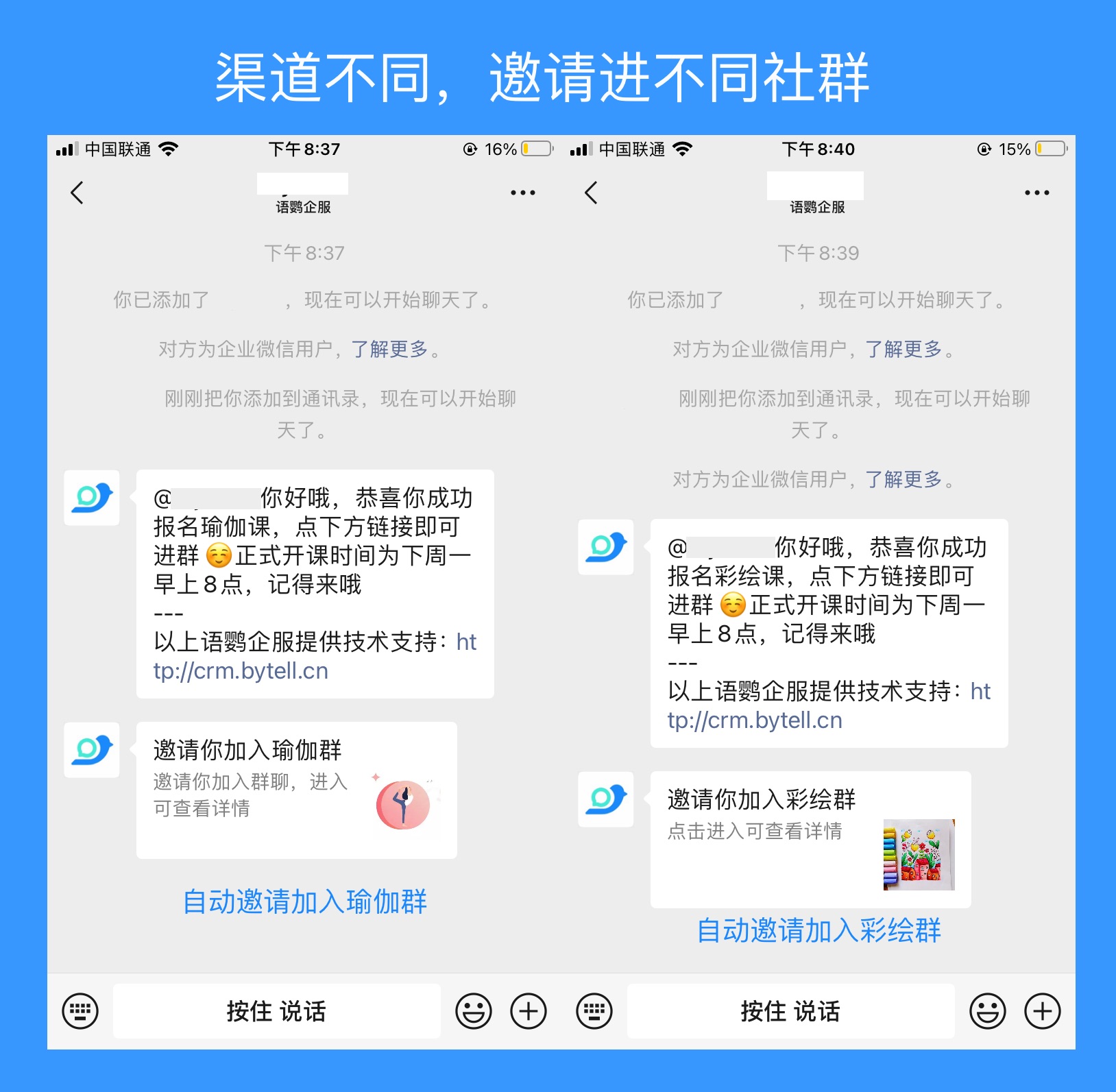 结合语鹦企服相关功能(如员工活码一键加好友并发送欢迎语邀请进群,不同渠道邀请进不同的社群等)进行社群运营,使企业在管理社群并针对其进行营销时更加方便。