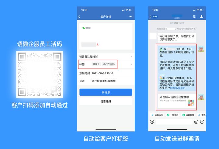 而语鹦员工活码支持自动双向通过好友,自动打标签,自动拉群等,还可随时动态修改,避开企业账号加好友限制。有需要的企业现在还可以到语鹦企服官网免费体验哦。