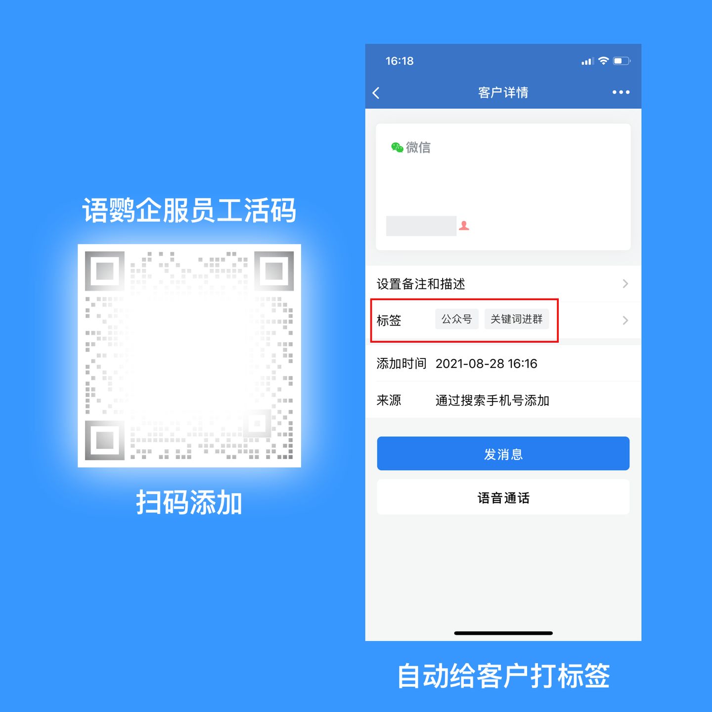 语鹦企服员工活码不仅能够打标签,还可以自动发送个性欢迎语进群邀请,不同渠道邀请进不同社群。更多强大功能请前往语鹦企服官网咨询了解,还可以免费进行体验~