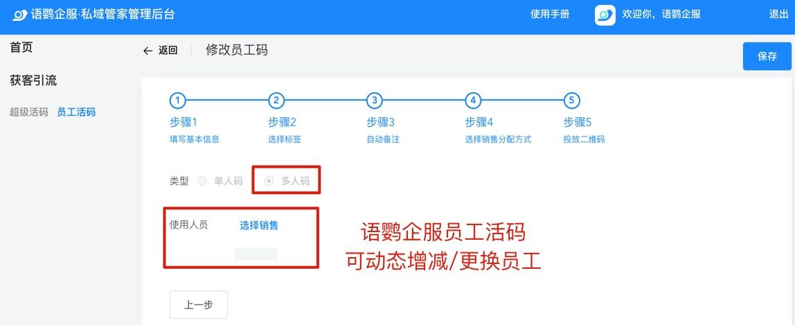 企业可以把二维码投放在公众号、自媒体或者搜索引擎等推广渠道上,把公域流量引流进企业微信里。但频繁添加和通过好友会使得企业微信账号受限制或有被封号的危险,这里建议企业可以选择使用语鹦企服的员工活码进行投放,支持随时动态更换账号,避免企业在加好友的过程中受阻。