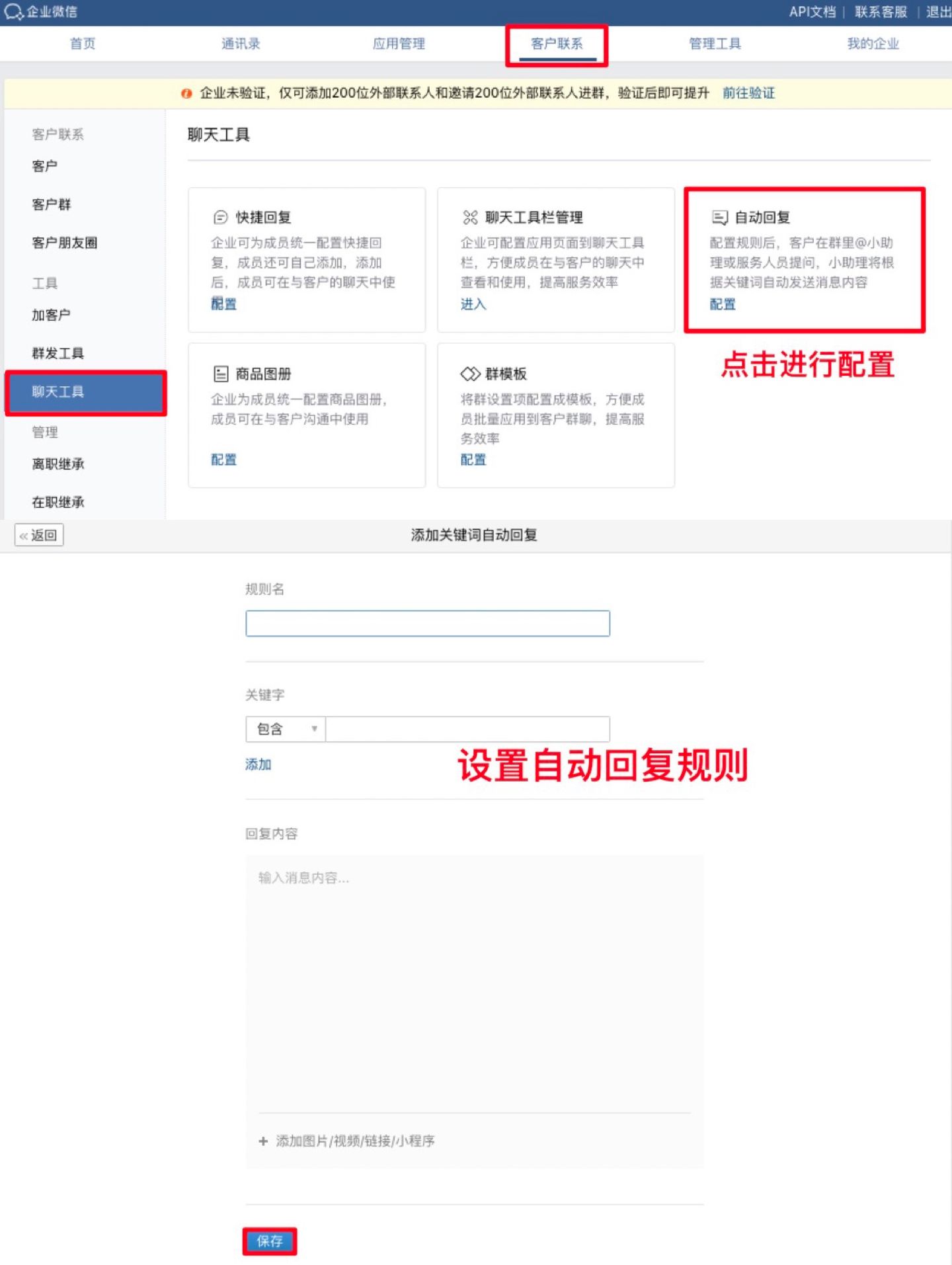 企业管理员可以在企业微信管理后台开通自动回复功能,设置相关回复规则等操作即可激活机器人。更多具体操作见语鹦企服另一篇文章《企业微信营销机器人可以自动回复吗?企业微信机器人有什么使用技巧?》。