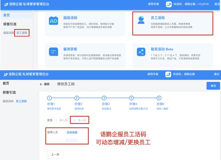 但是,如果企业微信账号出现问题不能正常使用或登录时,那么包裹卡是不是就没用了呢?其实,只要商家使用“特殊”的二维码就可以避免“客码两失”的情况发生。这里建议商家可以选择语鹦企服的员工活码,随时可动态更换二维码,使贴在包裹卡上的二维码永不失效