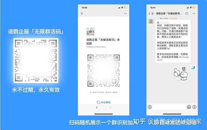 如果企业觉想要永久的群活码且不限制扫码进群人数,可以选择使用语鹦企服的无限群活码,群满人后还能自动建新群,群二维码永久不失效!下面会详细介绍。